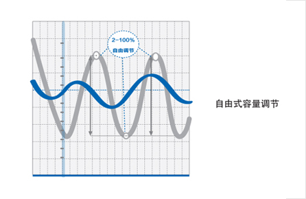机组采用直流变频技术,压缩机的转速随着负荷的变化,可实现能力在2~ 100%内无级调节,优化机组能耗。